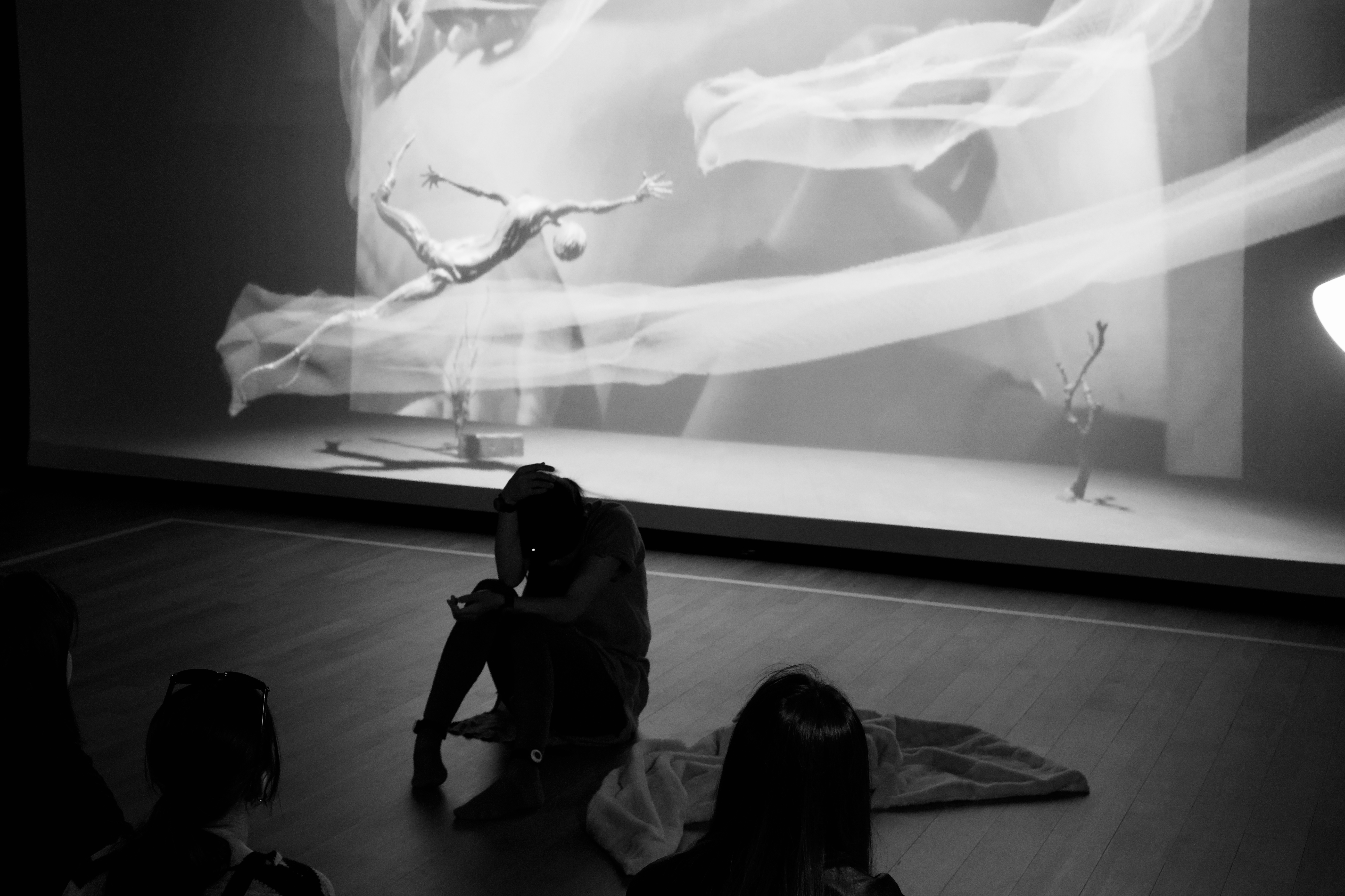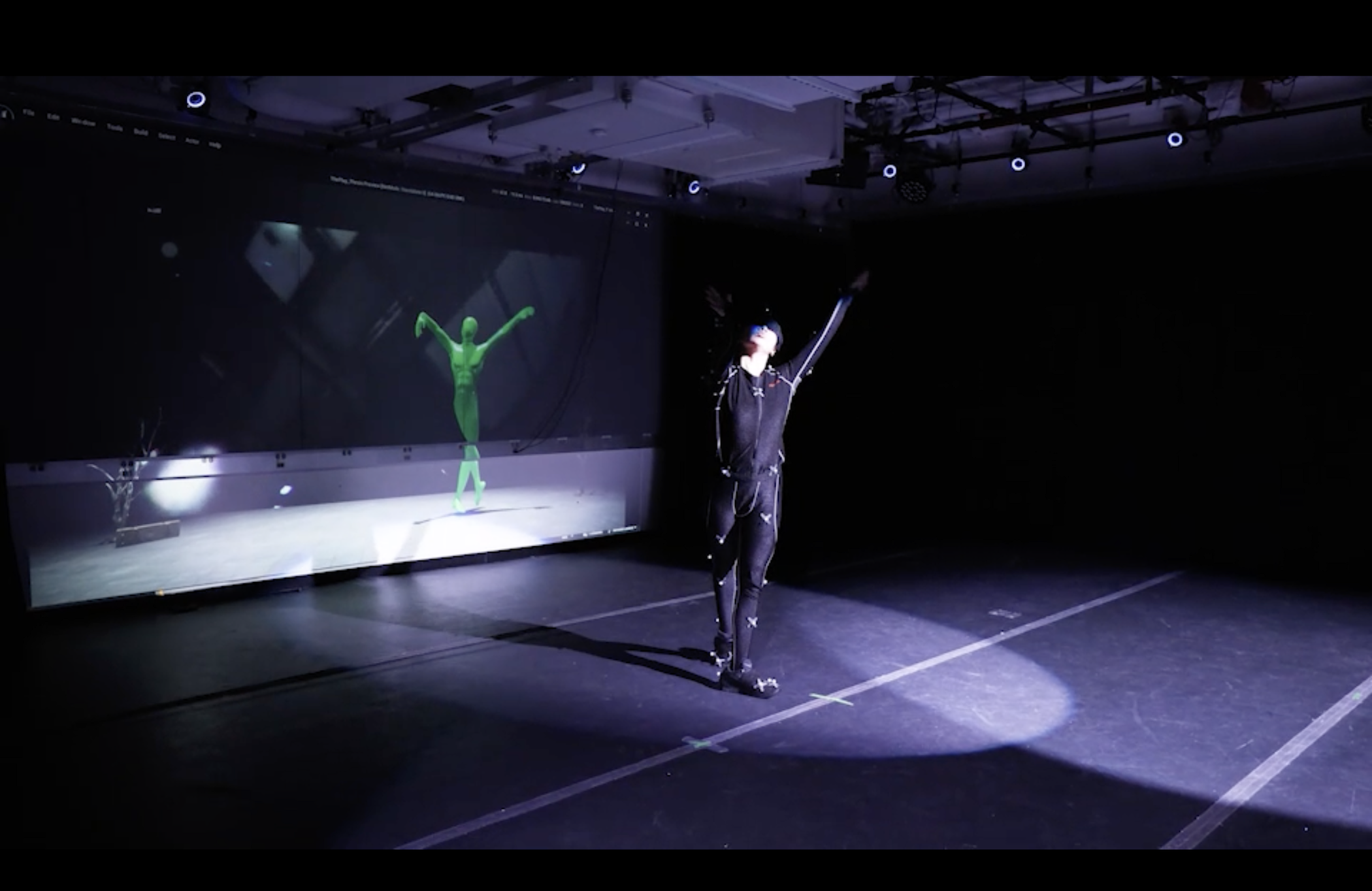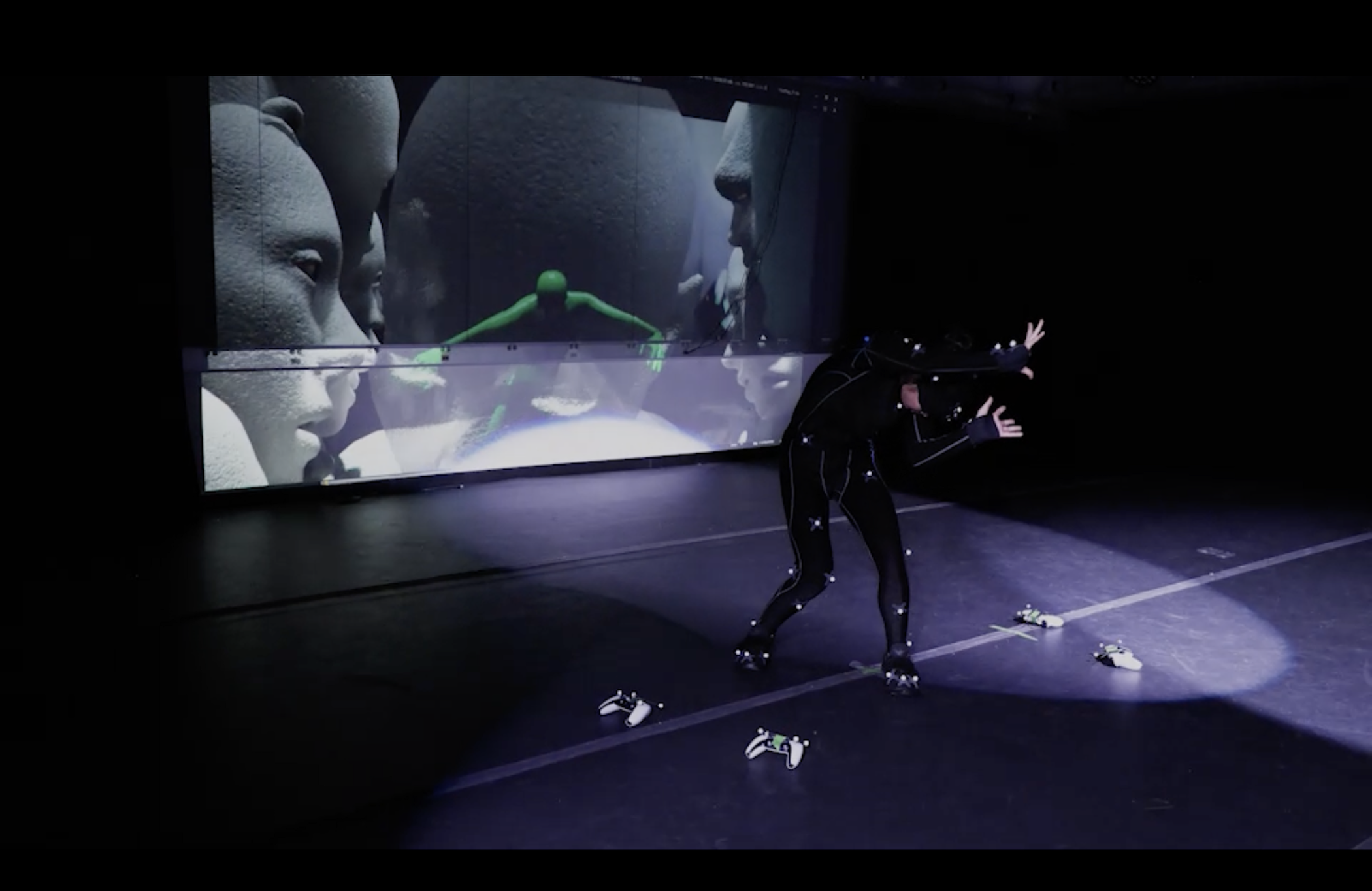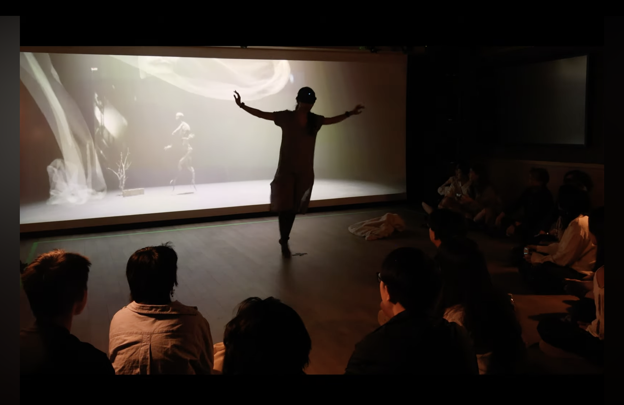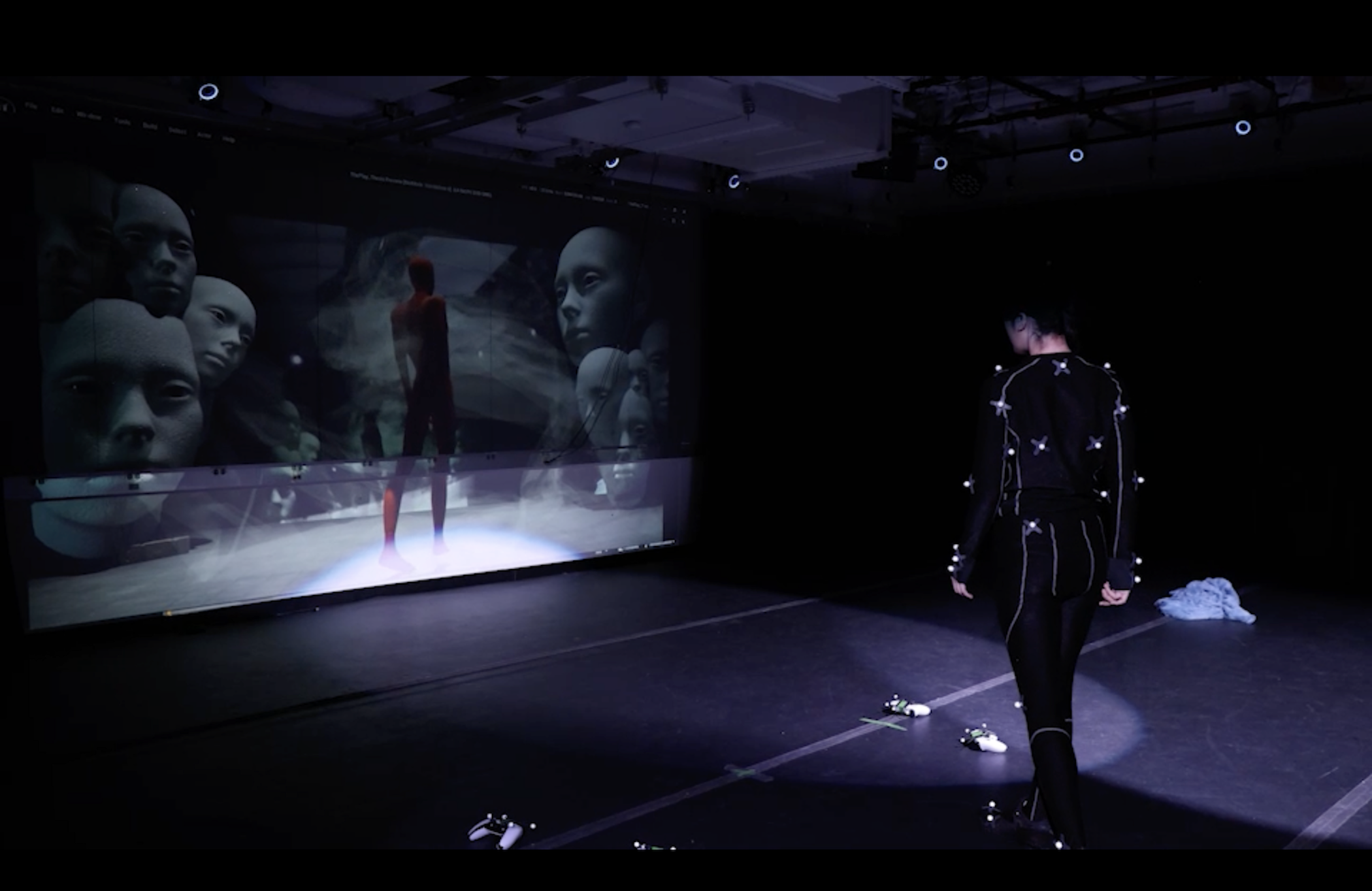 An interactive dance performance where a live dancer controls a digital avatar through real-time motion capture. The performer is wearing a protable webcam and streamign everything she sees into the game engine in real time. Audience members influence the avatar’s transformation using game controllers, shaping the story in real time. Blending live movement, projection, and audience participation, the piece explores how personal identity shifts under social influence.